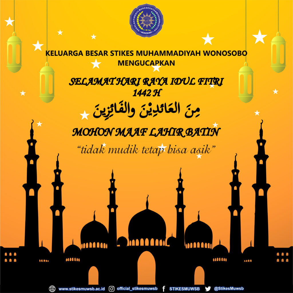 “Berharap malam segera tiba, berganti pagi penuh doa, menyambut Lebaran bersama keluarga. Izinkan kami memohon maaf atas segala dosa, Minal Aidin Walfaizin, mohon maaf lahir batin dari kami Keluarga Besar Stikes Muhammadiyah Wonosobo.”